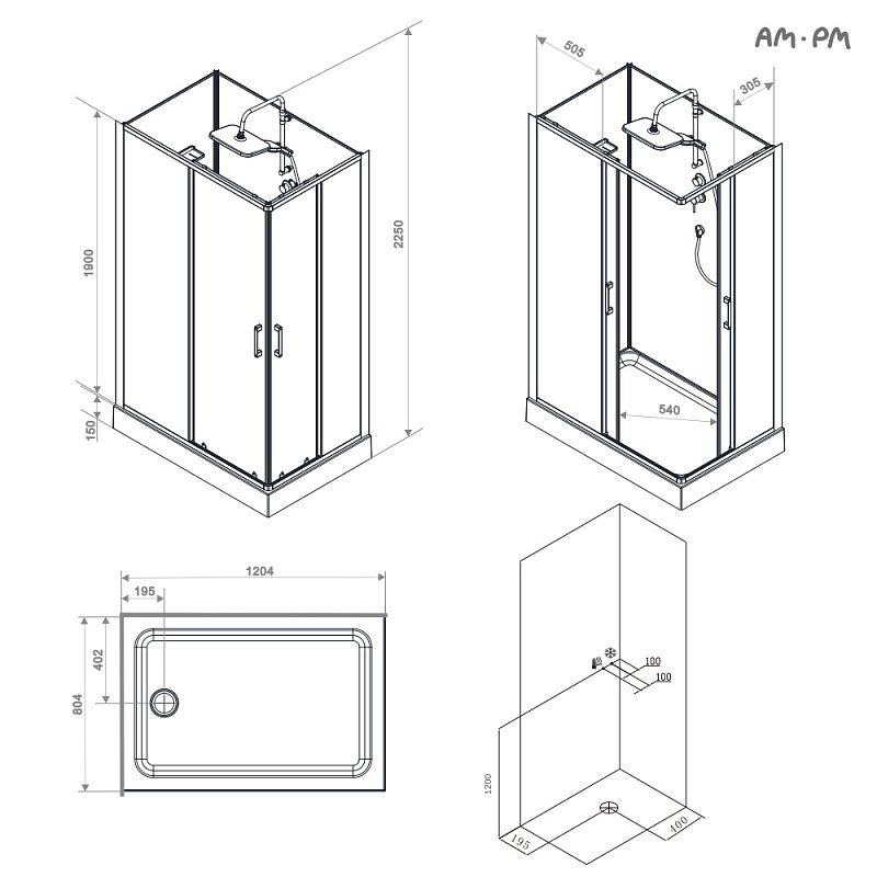 Душевая кабина 120x80 AM.PM Above W9XC-403-12080MT профиль серебристый, низкий поддон