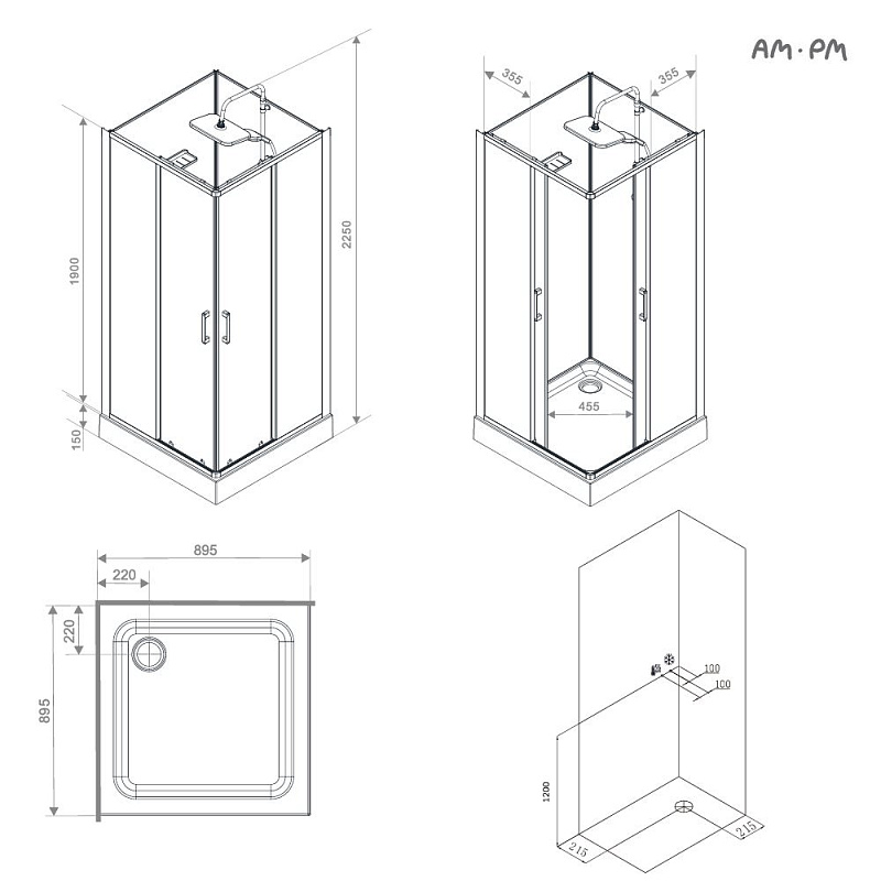 Душевая кабина бренда AM.PM коллекции Above без крыши с верхним тропическим душем представляет стильное решение для вашей ванной комнаты. Душевая кабина отлично впишется в ваш интерьер. Форма кабины - квадратная. Цвет профиля - серебристый. Размер (Ш/Г/В): 895x895x2250 мм. Высота поддона - 150 мм. Материал задних стенок - стекло. Материал дверок - прозрачное стекло. Толщина стекла - 4 мм.