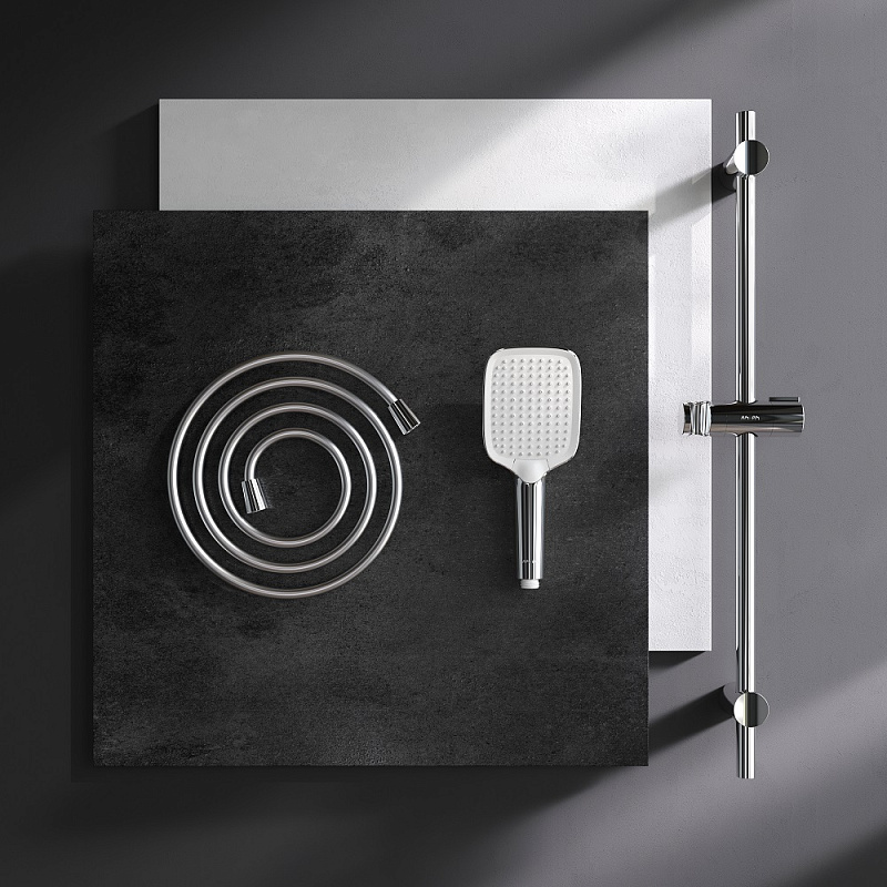 • каждая деталь продумана для вашего комфорта: шарнирное соединение надежно защищает душевой шланг от перекручивания, обеспечивая свободу движений, а регулируемый в трёх плоскостях держатель позволяет точно настроить положение ручного душа под ваши предпочтения;