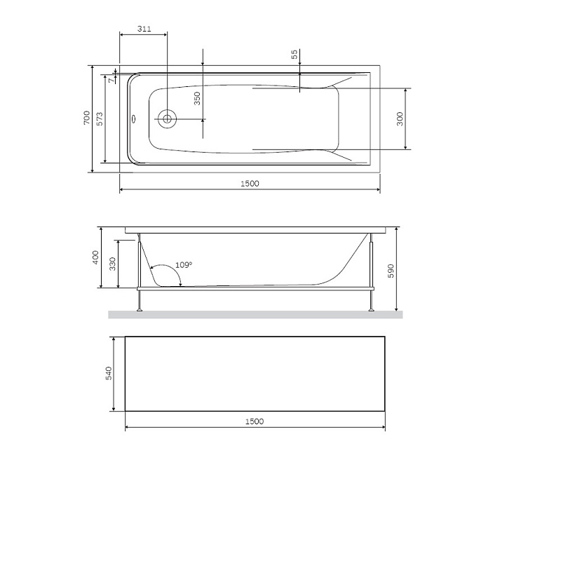 Панель фронтальная для ванны 170x70 AM.PM Gem W90A-170-070W-P1