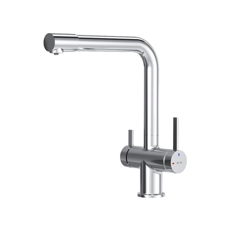 Встречайте долгожданное пополнение нашумевшей коллекции Func — кухонные смесители с оригинальными «фишками», характерными для всей коллекции. Дизайн, характерный только для премиум-сегмента, благодаря собственным дизайнерам бренда теперь представлен и в более доступной ценовой категории. Смеситель оснащён встроенным каналом для подачи питьевой воды. Чтобы получить питьевую воду, воспользуйтесь ручкой, расположенной с левой стороны корпуса; для обычной воды управляйте смесителем привычным образом. Размер (Ш/Г/В): 135x265x298 мм. Материал - нержавеющая сталь, цинк, латунь. Цвет - хром. Тип управления - однозахватный. Излив - поворотный.