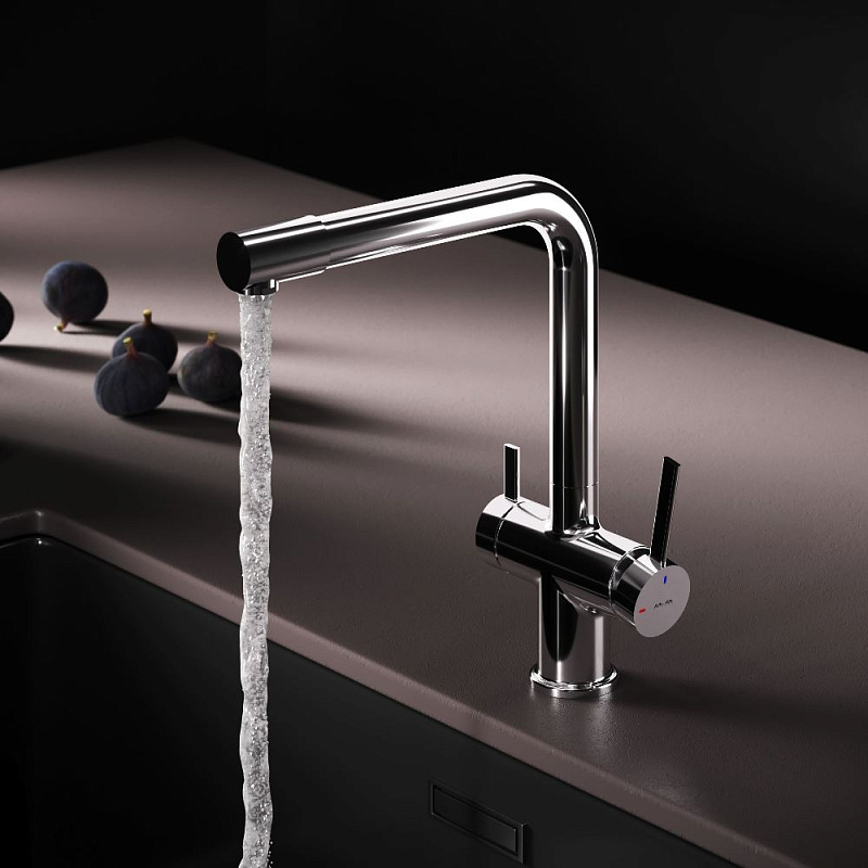 Смеситель для кухни AM.PM Func F8F05700 высокий с L-изливом с каналом для питьевой воды, хром