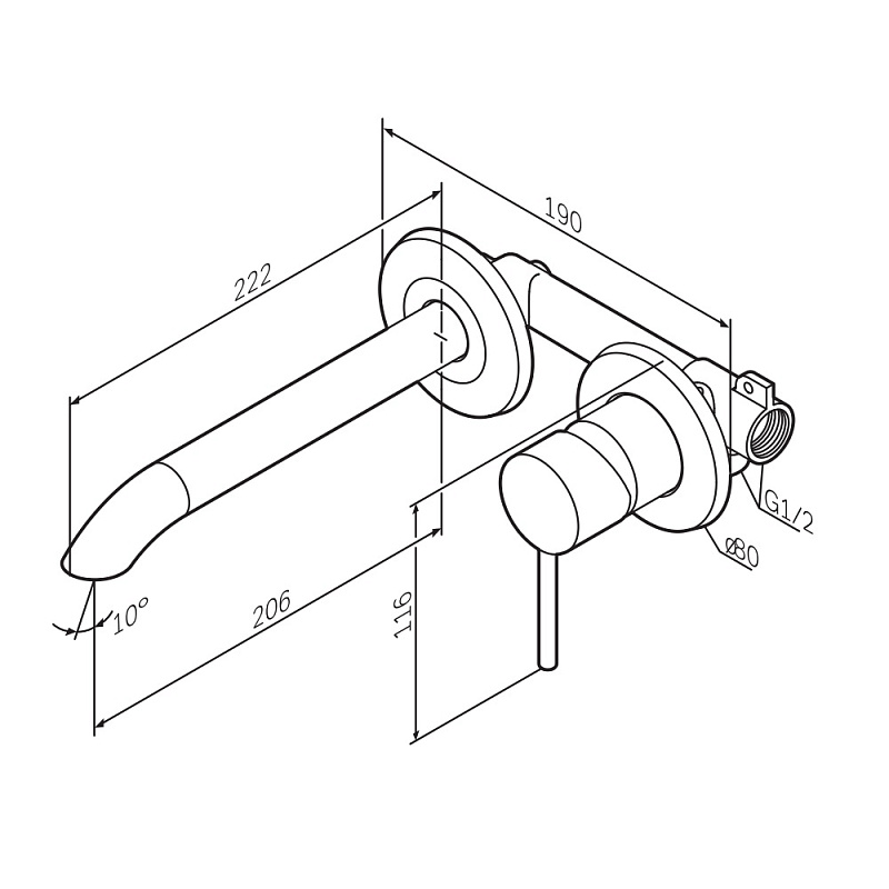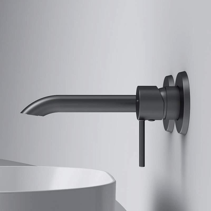 Выверенный изгиб в сочетании с чистой горизонталью излива подчёркивает архитектурную чистоту формы. Такое решение требует высокой точности производства и формирует цельный, визуально безупречный силуэт. А монтируемая в стену конструкция – это ответ на меняющиеся потребности клиентов, которые ищут простые и стильные решения для ванной комнаты. Размер ручек (Ш/Г/В): 49x49x62,8 мм. Размер излива (Ш/Г/В): 190x222x116 мм. Материал - латунь. Цвет - черный.