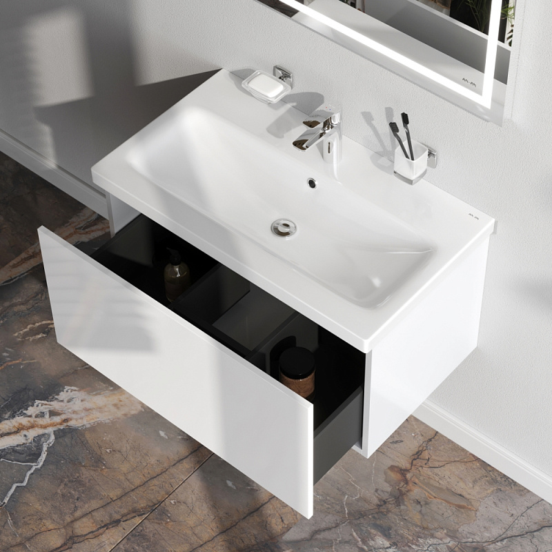 Тумба с раковиной 80 AM.PM Gem M90FHX0802WG подвесная белый глянец