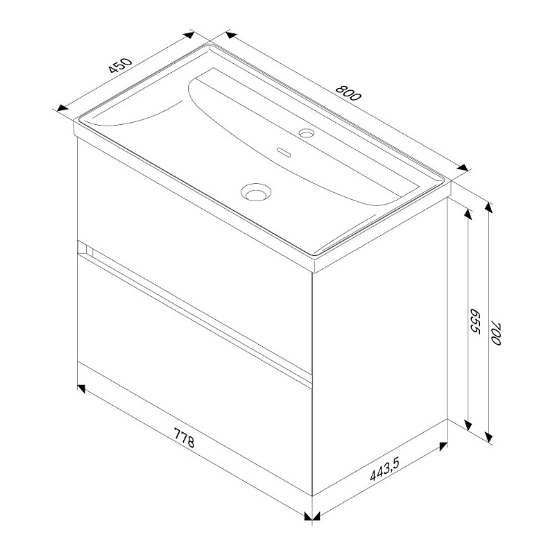 Подвесная тумба бренда AM.PM коллекции Above - баланс форм в актуальной минималистичной эстетике с утонченным силуэтом. Коллекция Above играет с пространством, создавая ощущение лёгкости и простора. Это достигается за счет аккуратного запила фасада и корпуса под углом 45°. Каждая линия работает на эффект невесомости и создаёт ощущение простора даже в компактной ванной комнате. Дизайн разработан студией DanelonMeroni (Великобритания / Италия) и отражает философию коллекции — максимум визуального эффекта без лишних деталей. Размер тумбы (Ш/Г/В): 800x450x700 мм. Цвет тумбы – белый глянцевый.
