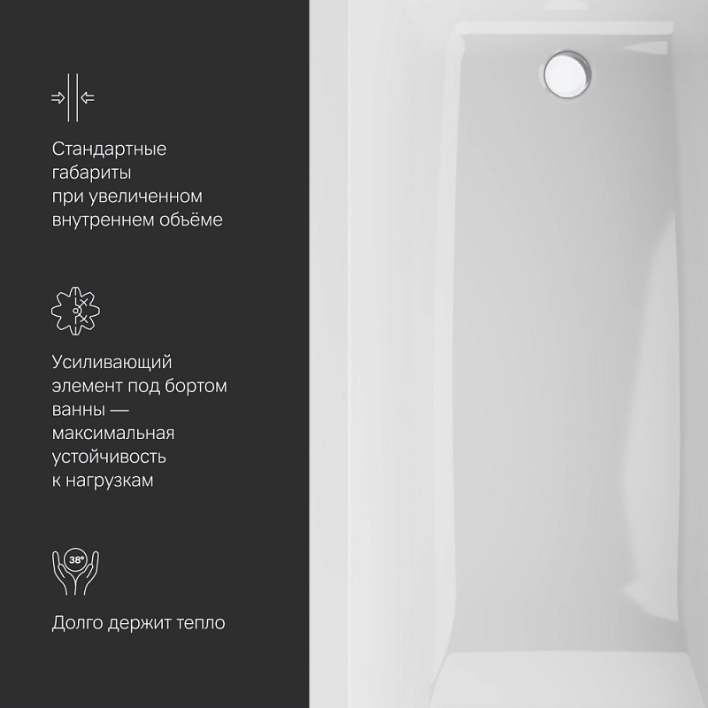 Допуск на отклонение фактического размера акриловых комплектующих, относительно заявленных на чертеже +/- 7 мм на 1 погонный метр. Размеры помещения под установку ванны должны обеспечивать технологический зазор +5 мм с каждого борта ванны (для учета линейных расширений материала под воздействием температуры и веса воды).