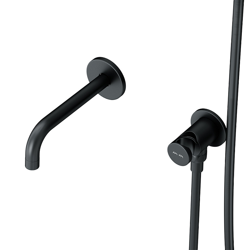 Размер ручного душа - 120 мм. Длина душевого шланга - 1750 мм. Размер держателя лейки ручного душа (Ш/Г/В): 106x75x42 мм. Цвет - черный. Монтируемый в стену излив - это современное решение для экономии пространства. Длина излива составляет 204 мм. Цвет - черный. Размер смесителя (Ш/Г/В): 150x144x180 мм. Материал встраиваемой душевой системы - Латунь, Zamak, нержавеющая сталь, PPA.