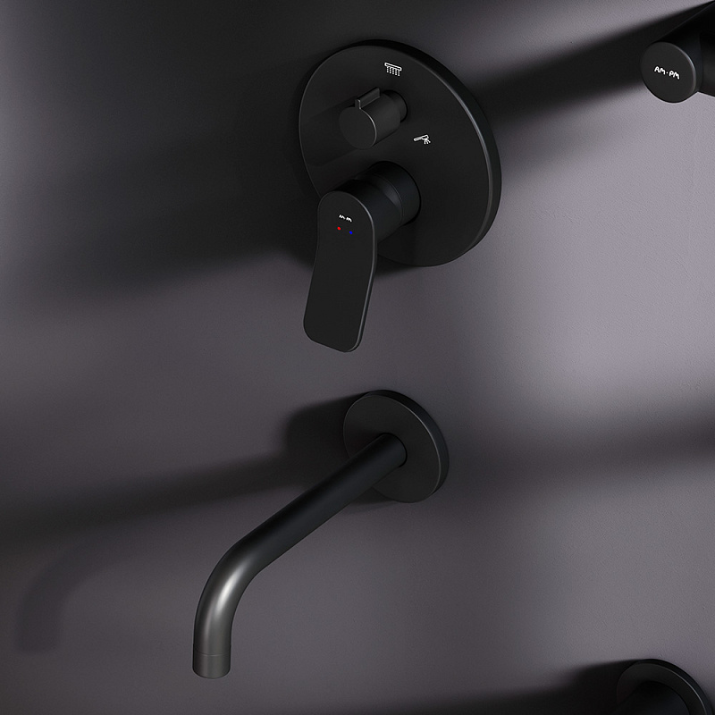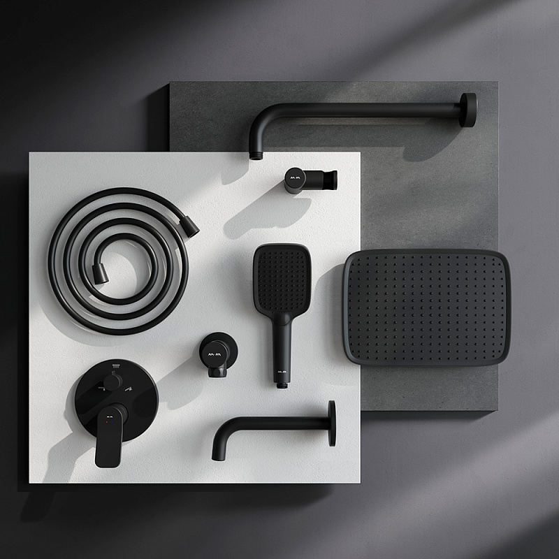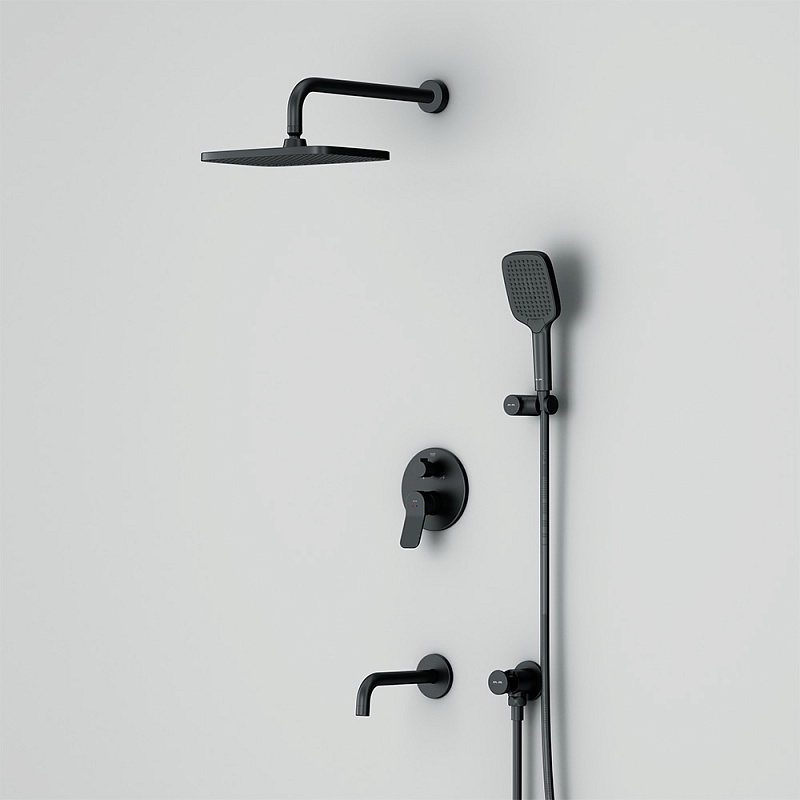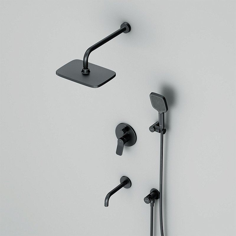 Встраиваемая душевая система AM.PM X-Joy FB85A3RH42 черный: тропический верхний душ, излив с душевой лейкой
