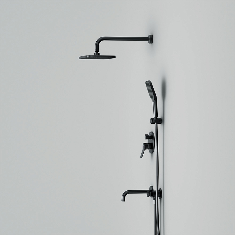 Размер ручного душа - 120 мм. Длина душевого шланга - 1750 мм. Размер держателя лейки ручного душа (Ш/Г/В): 80x204x105 мм. Цвет - черный. Монтируемый в стену излив - это современное решение для экономии пространства. Длина излива составляет 204 мм. Цвет - черный. Размер смесителя (Ш/Г/В): 150x144x180 мм. Материал встраиваемой душевой системы - Латунь, Zamak, нержавеющая сталь, PPA.