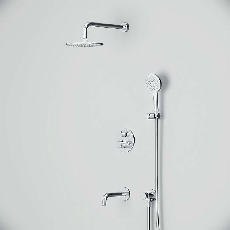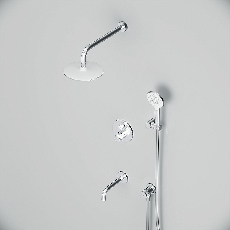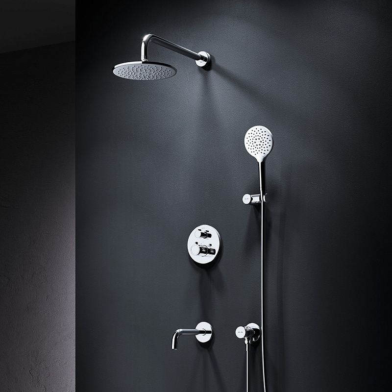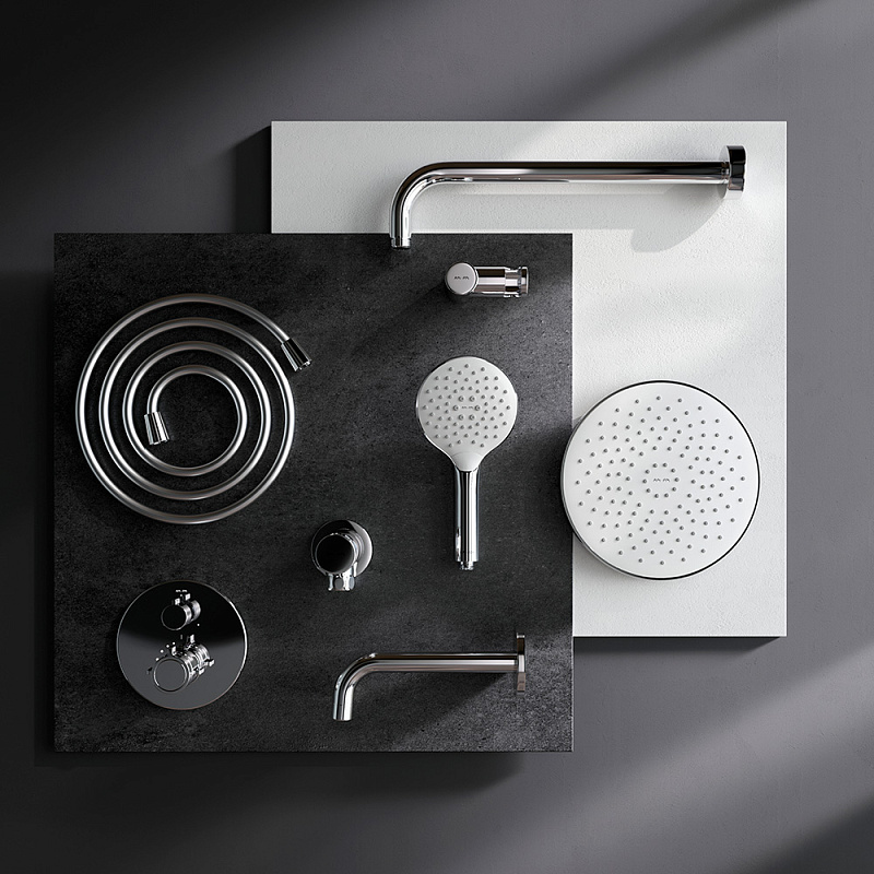Встраиваемая душевая система от бренда AM.PM коллекции X-Joy включает в себя по-настоящему дизайнерские продукты в своем ценовом сегменте: лейку тропического душа с держателем, термостатический смеситель для ванны и душа, душевую лейку с держателем, шланг для душа, излив на ванну. Разработанные дизайн-агентством GP designpartners из Австрии, они завоевали любовь многих покупателей.